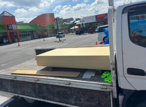 次に、新しい間仕切り壁の材料となる「プラスターボード」を運び込みました。 より頑丈な壁を作るため、厚さ12.5mmのボードを38枚。これが本当に重く、一人で運び終えた頃には汗だくでした(笑)。 ですが、この一枚一枚が、皆様の安全を守る壁になるんだと思うと、俄然力が湧いてきます。