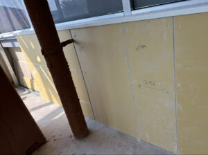 これで天井と壁の大きな工事は、ほぼ完成です! …まあ、天井の柱周りの一番ややこしい部分は、まだ見て見ぬふりをしているんですが(笑)。